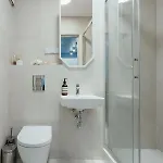 At the apartment, a separate toilet and a shower have been provided to enhance your comfort. A hairdryer and bath sheets are also included in the bathroom.